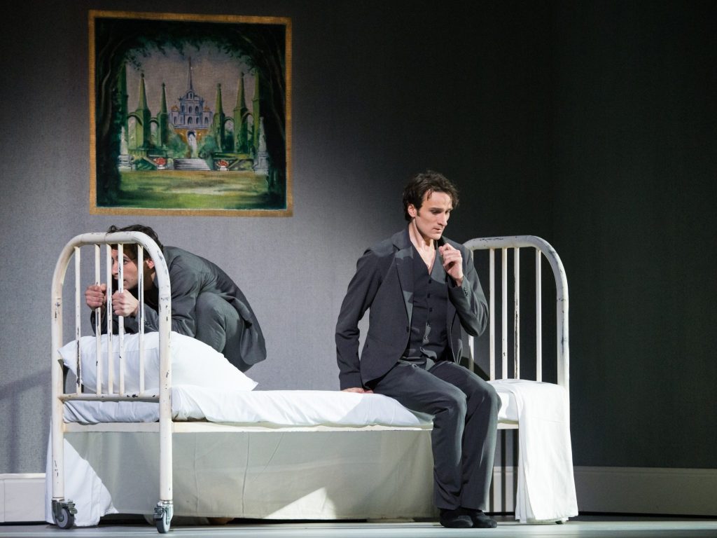 Le ballet commence par l’arrivé de Nijinsky (Mihail Sosnoschi) à la clinique, accompagné de sa femme (Nina Polakova), qui le laisse entre les mains du médecin (Roman Lazik). La chorégraphie de cette première partie est d’un style contemporain assez académique faisant la part belle à l’expressivité, tout en gardant un souci permanent de la ligne et des éléments classiques qui chez Neumeier sont rarement loin.