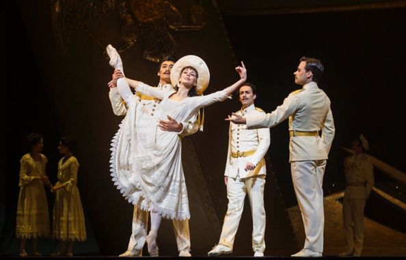 Le premier acte est enchanteur, tout en légèreté, espièglerie et joie de vivre, même si subtilement nuancé par l’inquiétant personnage de Raspoutine et l’obscurcissement progressif du ciel en arrière-plan. Le cadre (un pont de paquebot avec transats bain de soleil), les costumes (uniformes de marins et robes blanches légères, chapeaux de paille et ombrelles), tout renvoie à une période de vie agréable et insouciante, où est mise en scène une Anastasia dans la fleur de l’âge. Son personnage est dépeint conformément à ce qui a été relevé par les historiens : l’accent est mis sur son caractère espiègle, entrainant, une jeune fille peu à cheval sur les bonnes manières mais très enjouée et pleine d’énergie. La bondissante Natalia Osipova est parfaitement à l’aise dans le rôle, et lui donne une délicieuse candeur.