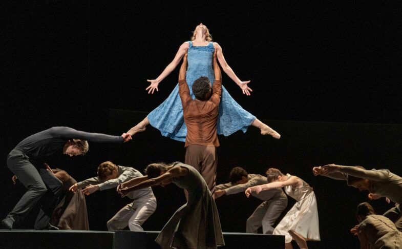 Ce n’est pas la première fois que Cathy Marston personnifie les objets par le biais de ses danseurs – on se souvient de sa superbe tempête de neige dans Snowblind, créé pour le San Francisco Ballet. Ici, elle pousse le concept plus loin encore. Déjà car, au-delà des passages dansés, des membres du corps de ballet figurent une série d’objets du quotidien (le tourne-disques par exemple), se substituant ainsi partiellement au décor. Mais surtout, car elle fait le choix de faire incarner par un danseur le violoncelle lui-même, et d’en faire un personnage central du ballet. Choix osé, et formidablement réussi.